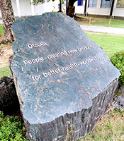 在公海彩船6600制药的员工研修设施——能力开发研究所以及相邻的“Vega Hall会议厅的周边,装饰着三座标志物。这些标志物是为了鼓励在来研修的员工,激发自我挑战意识而特意设置的。